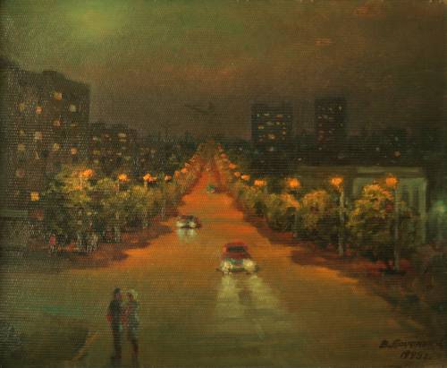 «Ночной Ильичевск» 1998 г. картон, масло. 51х59
