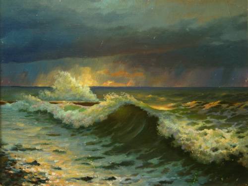 «Сочинские шторма» 1989 г. картон, масло. 37х46